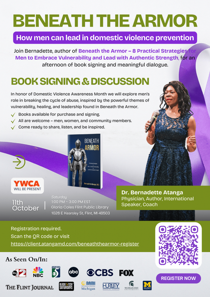 Dr. Bernadette Atanga is a distinguished physician with over thirty years of experience specializing in combined Internal Medicine and Pediatrics in the United States. She is also a sought-after leadership coach and the author of Beneath the Armor, a compelling book that explores the emotional burdens men carry and how societal expectations of emotional suppression shape families, workplaces, and communities.